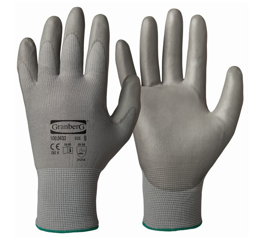 Monteringshansker Oeko-Tex 100-godkjent. Polyuretanbelegg. str 8