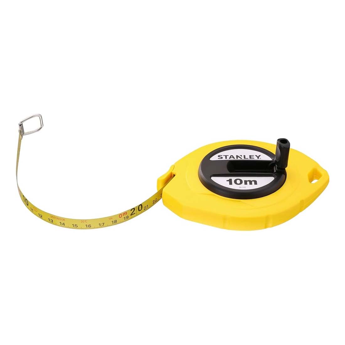Stanley målebånd 10m. Stålblad med belegg mot korrosjon, i et solid, lukket ABS-etui. Med foldbar sveiv og praktisk krok-oppbevaring.