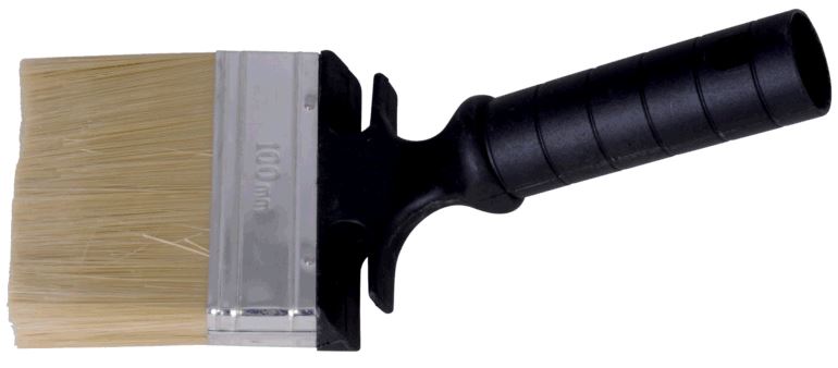Funder beispensel med vinklet skaft til maling utendørs. Håndtaket har fester til å henge penselen på kanten av malerspannet.Kan kobles til forlengelsesskaft.