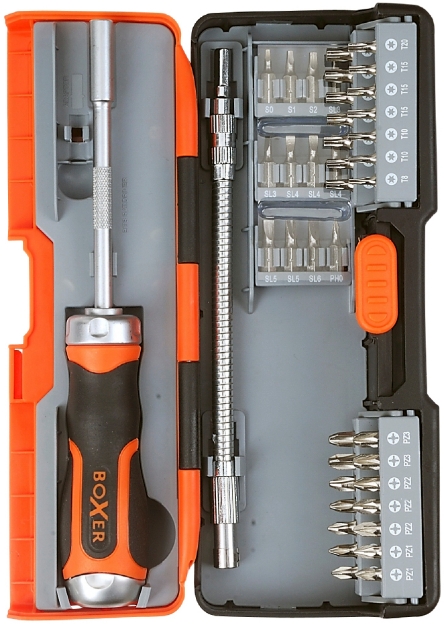 LK x 11: 0-1-2-3x2-4x3-5x2-6 PZ x 7: 1x2-2x3-3x2 PH x 8: 0-1x3-2x2-3x2 Torx x 14: T8-T10x2-T15x3-T20x3- T25x3-T27-T30 1 stk. fleksibel forlenger 210 mm. 1 stk. skralleskrutrekker med bitsmagasin 1 stk. bitsholder/adapter 1/4"