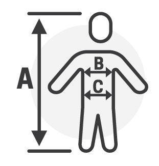 Veiledende størrelsesguide til Sara Workwear arbeidstøy. Målene i tabellen under er oppgitt i cm, og viser høyde, bryst- og midjeomkrets.