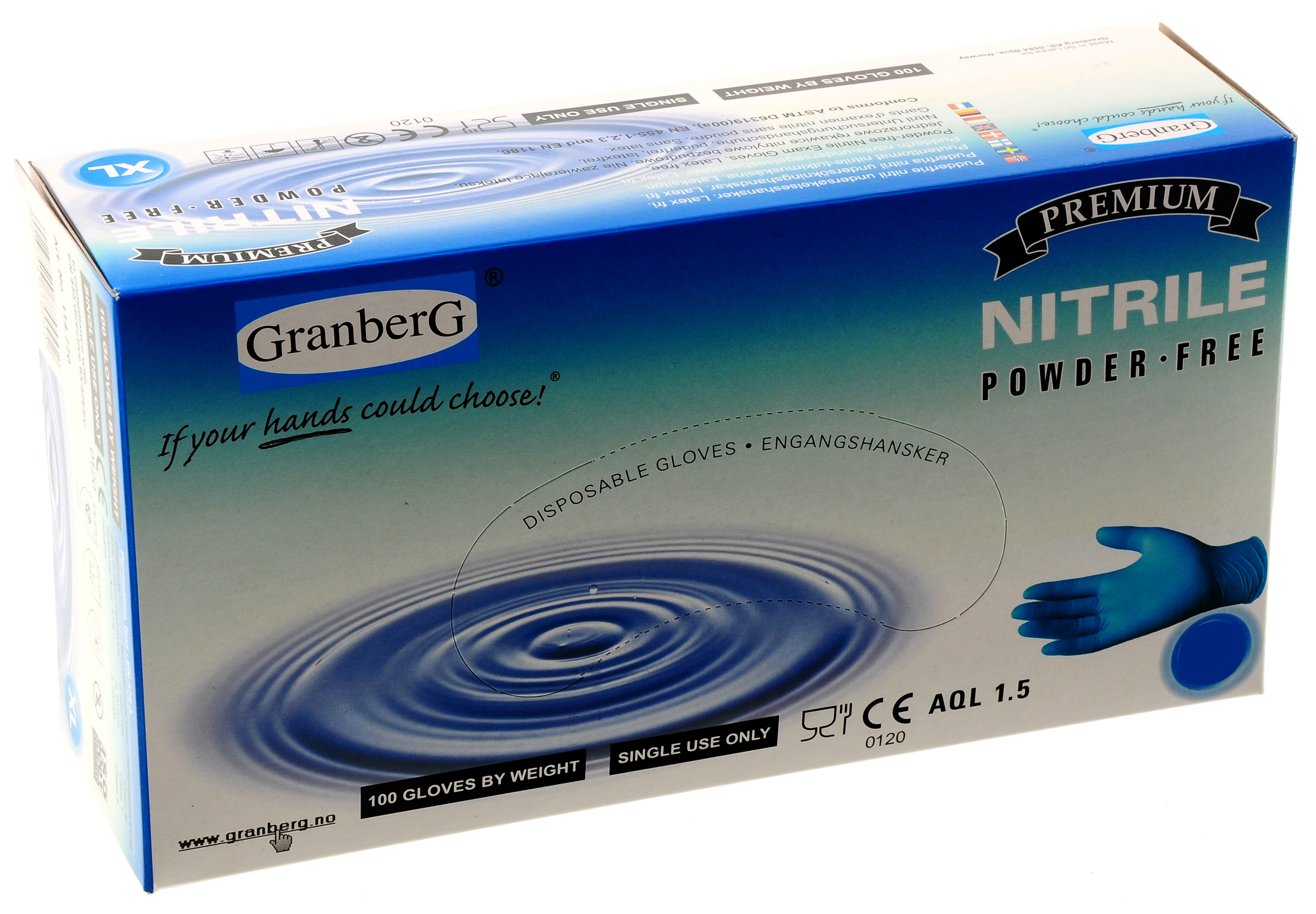 Engangshansker Nitrile, pudderfri, blå farge str L