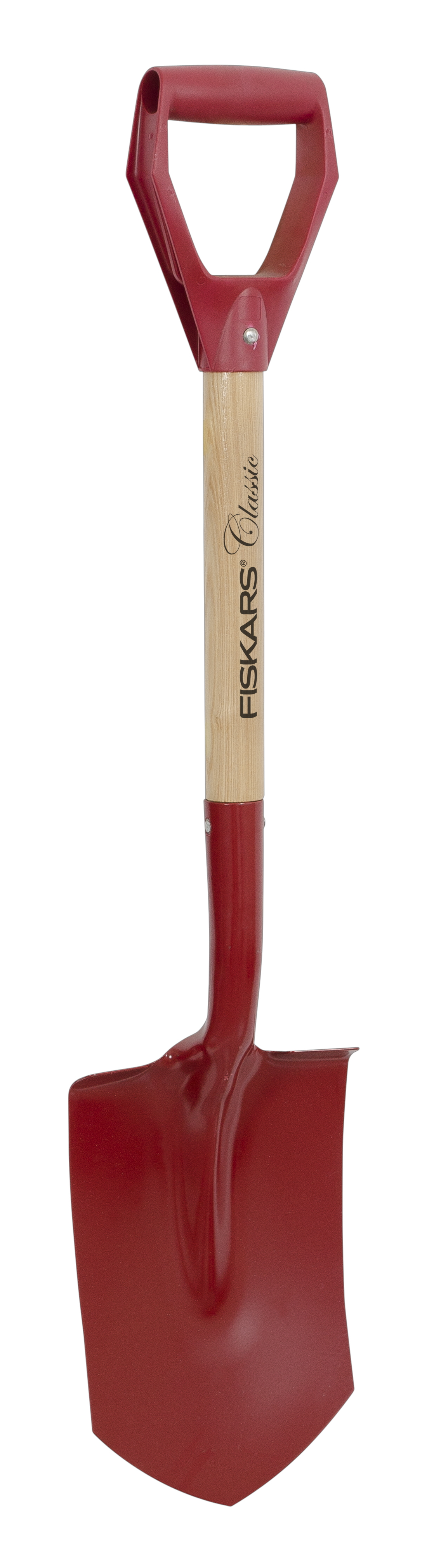Fiskars Classic plantespade med spisst blad for hard, steinete jord. Kort spade til vending av plantejord når blomster, trær og busker skal plantes ut. Hode i pulverlakkert herdet stål, D-håndtak og skaft i lakkert ask.