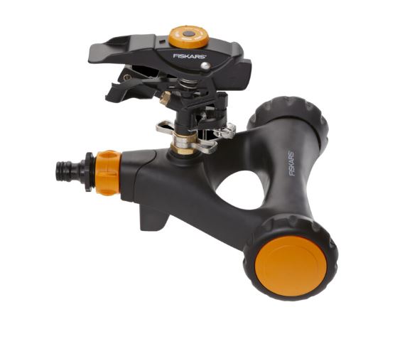 Fiskars impulsspreder XL i metall med hjul. Meget solid spreder for store vanningsområder på over 500 m2. Vanningsområde justeres enkelt opptil 25 meter i diameter, og vanningsmønsteret justeres enkelt fra lett regn til kraftig dusj. Den triangulære metallbasen gir god stabilitet, og hjulene gjør det lett å flytte sprederen etter behov.