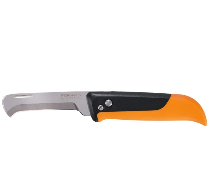 Fiskars K80 Innhøstingskniv, foldbar. Høst inn uten å gjøre skade på vekstene rundt med Fiskars X-series sammeleggbare innhøstningskniv. En kniv som gir deg rene, presise snitt i både tynne og grovere stilker uten at det rundt tar skade. Det presisjonsslipte bladet i rustfritt stål har en liten "hook" som gjør det lettere å komme til der man vil uten å skade stilker og vekster rundt det aktuelle området.