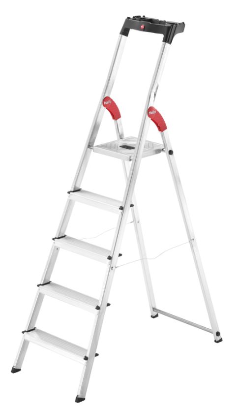 Hailo L60 gardintrapp i aluminium med praktisk brett til verktøy, maling og lignende.