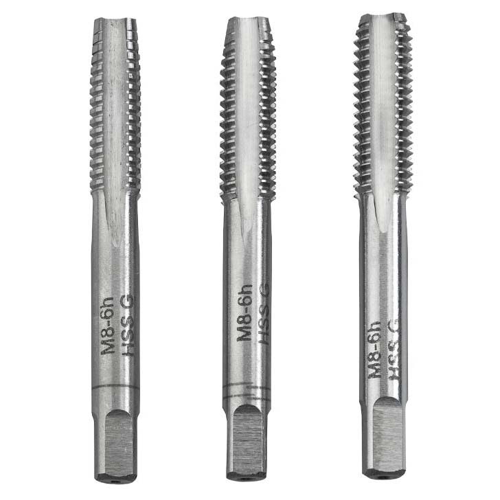 KWB sett med gjengetapper i HSS-stål til bruk sammen med tappnøkkel eller verktøyholder for å lage innvendige gjenger i ulike materialer. Settet inneholder 3 ulike gjengetapper med for- mellom- og bunntapp. DIN 352.