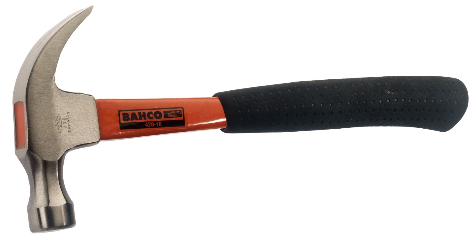 Bahco snekkerhammer, 16oz med glassfiberskaft og støtabsorberende komforthåndtak. Hode med rund, herdet slagbane og herdet klo med spesialslipte kanter. Hodet er festet til skaftet med epoxymasse.