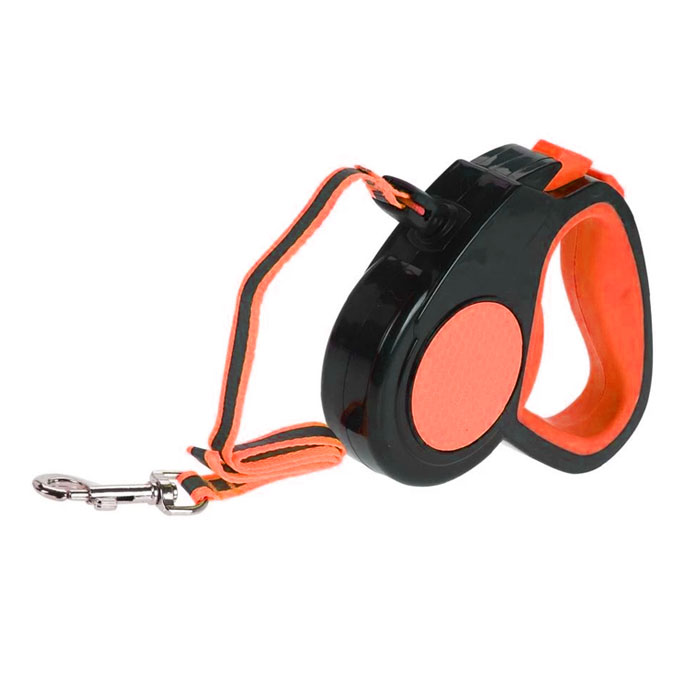 Hundebånd med ergonomisk håndtak og automatisk inn- og utmating med lås. Refleksdetaljer på håndtaket og nederst på båndet gir økt synlighet. Båndet er totalt 5 meter, og passer til hunder opptil 20 kg.