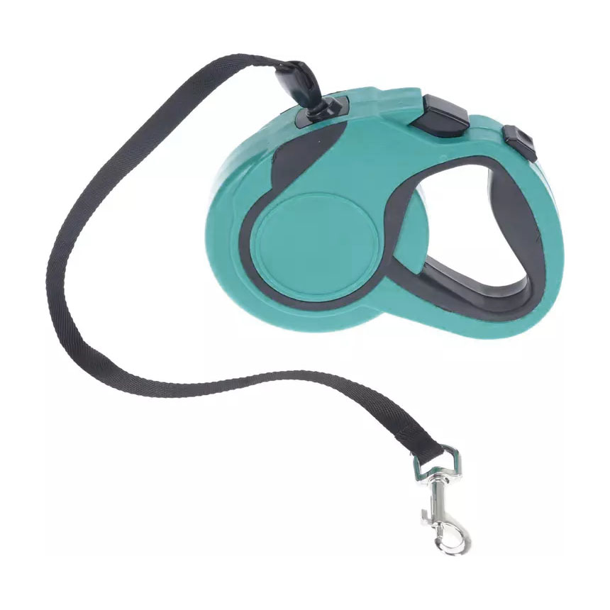 Hundebånd med ergonomisk håndtak og automatisk inn- og utmating med lås. Båndet er totalt 5 meter, og passer til hunder opptil 20 kg.