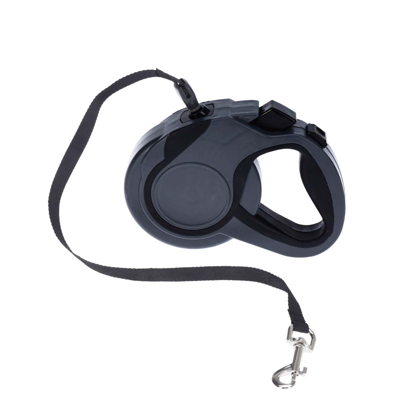 Hundebånd med ergonomisk håndtak og automatisk inn- og utmating med lås. Båndet er totalt 8 meter, og passer til hunder opptil 35 kg.