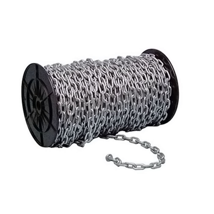 Kjettingen er trommlet opp på en solid plastspole (type 0), og pakket i solid pappkartong med norsk etikett og gtin-13.