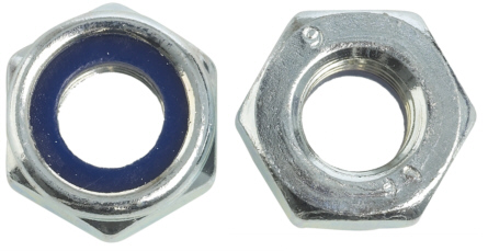 Låsemutter med nylonring DIN985. Elektrolytisk forsinket. Kvalitet 6. Korrosjonsklasse: C1 - Kun innendørs i oppvarmede bygninger med ren atmosfære.