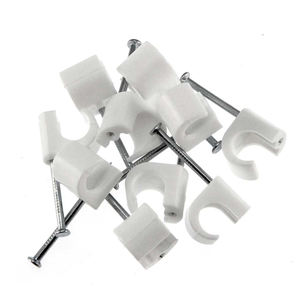 Runde kabelklips med spiker. Passer 5-7 mm ledninger. Pakke med 20 stk.