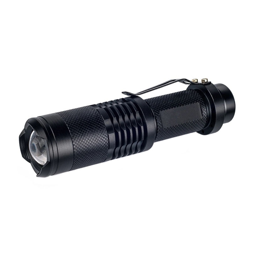 Lommelykt i aluminium med 3W CREE LED med 70 lumen lysstyrke.Batteri: 1x AA, medfølger ikke.