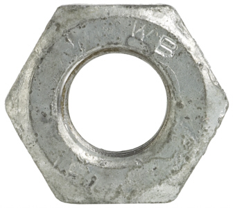 Sekskantmutter DIN934. Varmforsinket. Kvalitet 8. Korrosjonsklasse: C4 - Utendørs: Industri og kyststrøk med moderat saltinnhold. Innendørs: Kjemiske bedrifter, svømmebasseng, skipsverft, båtbyggerier.