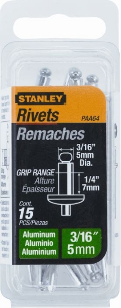 Stanley blindnagler aluminium. Passer til alle Stanley popnagletenger, for eksempel popnagletang: 0-69-804, 0-69-833, 6-MR77, 6-MR55, 6-MR100