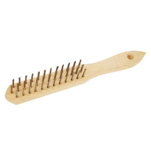 Rollo håndbørste i tre med stålbust i 3 rader til rustfjerning og lignende. Stålbørsten har hull i håndtaket til opphenging.Mål: 26,3 x 3 x 1,6 cmBust: 22 mm