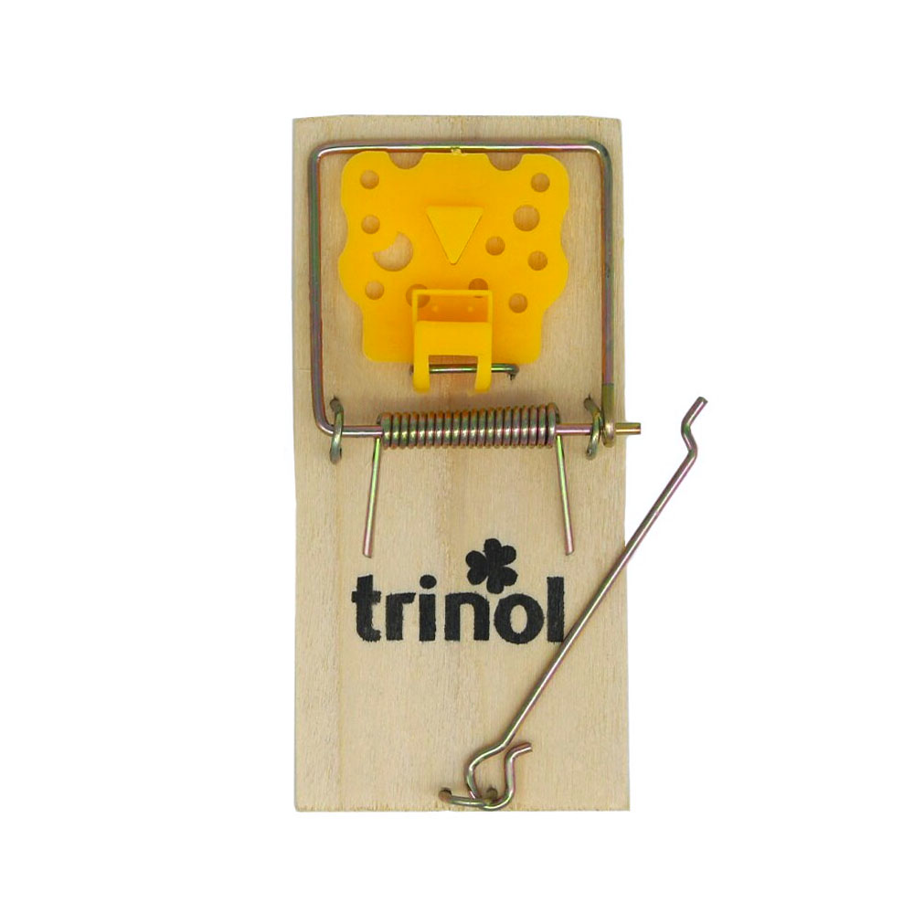 Effektiv og kraftig rottefelle i tre. Ved berøring av platen smekker fellen igjen.