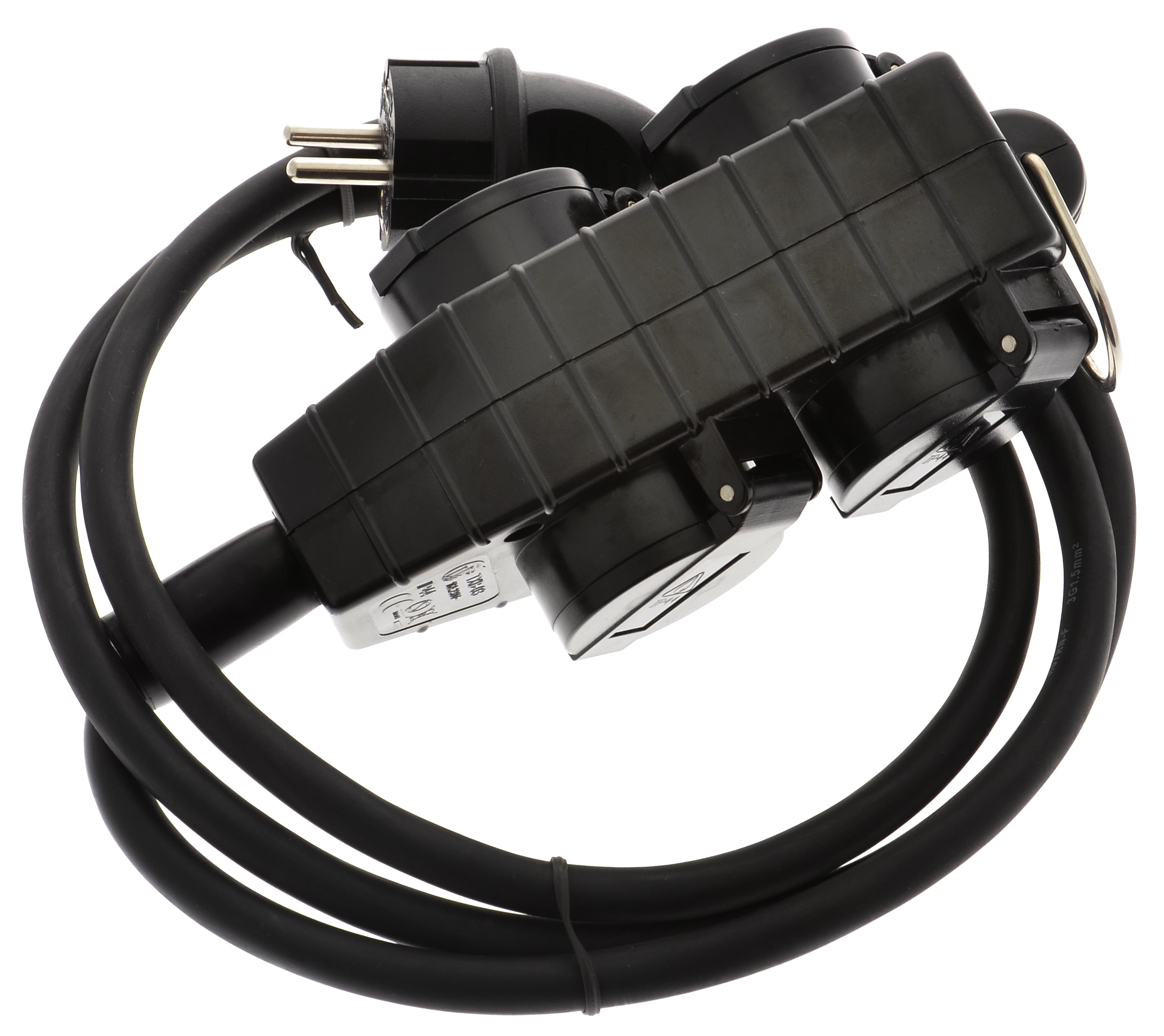 4-veis skjøteledning med kraftig og bøyelig gummikabel som tåler store påkjenninger som olje, fett og temperaturforskjeller. Lengde: 1,4 meterKabel: H07RN-FTverrsnitt: 3G1,5 mm²IP-grad: IP44