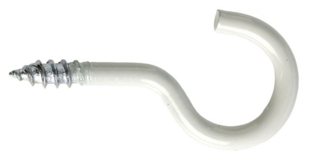 Øyeskrue, elektrolytisk forsinket, hvit epoxy belagt. Korrosjonsklasse: C2 - Utendørs: Atmosfære med liten eller ingen grad av forurensing. Land-atmosfære. Innendørs: Uoppvarmede bygninger. Kondens kan forekomme. Lager, sportshaller.
