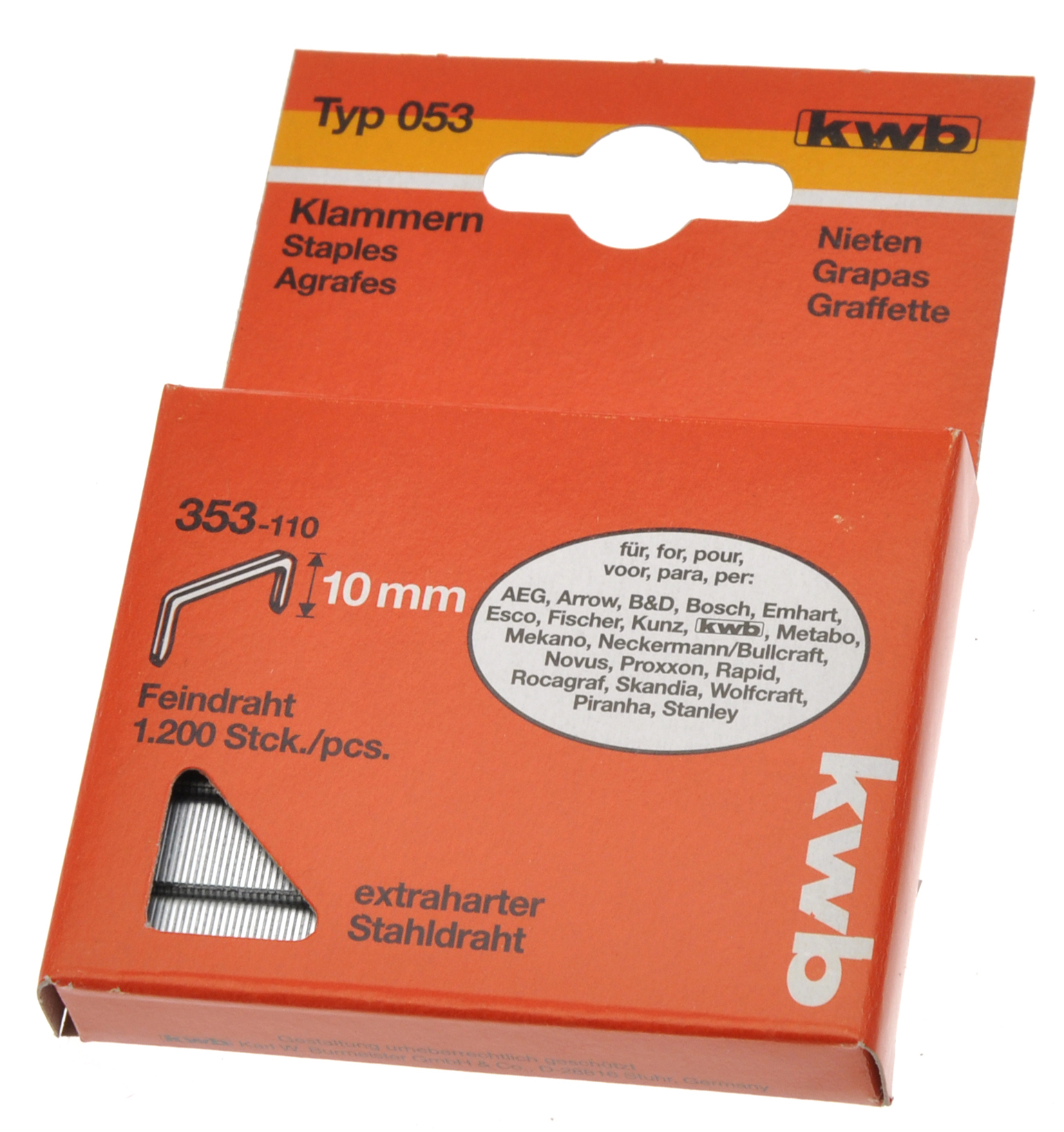 KWB stifter i høy kvalitet, type 053. Egnet til håndtverk, metallnetting, smalt treverk, papir, møbeltekstiler og lignende.