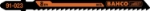 Stikksagblad EURO norm, 91 Blad med innfesting for AEG, Atlas Copco, Bosch, DeWalt, Hitachi, Makita, Metabo, Milwaukee m.fl. Bladtyper: HCS: Kullstål er velegnet for kapping i tre, plast og andre mykere materialer. HSS: High Speed stål har lang levetid og kapper de fleste materialer. BM: HSS bimetall kombinerer skjæreegenskapene fra HSS med fleksibiliteten fra kullstål. Bladene er bruddsikre og skjærer i de fleste materialer. TC: Hårdmetallbestykket for harde og slitende materialer som f.eks. keramikk, marmor, glass, rustfritt stål. HM: Hårdmetallblad. En ny serie blad med progressiv tanning. Den progressive tanningen består av mange fine tenner nærmest innfestingen på bladet, ideelt når det skal kappes i tynne materialer.