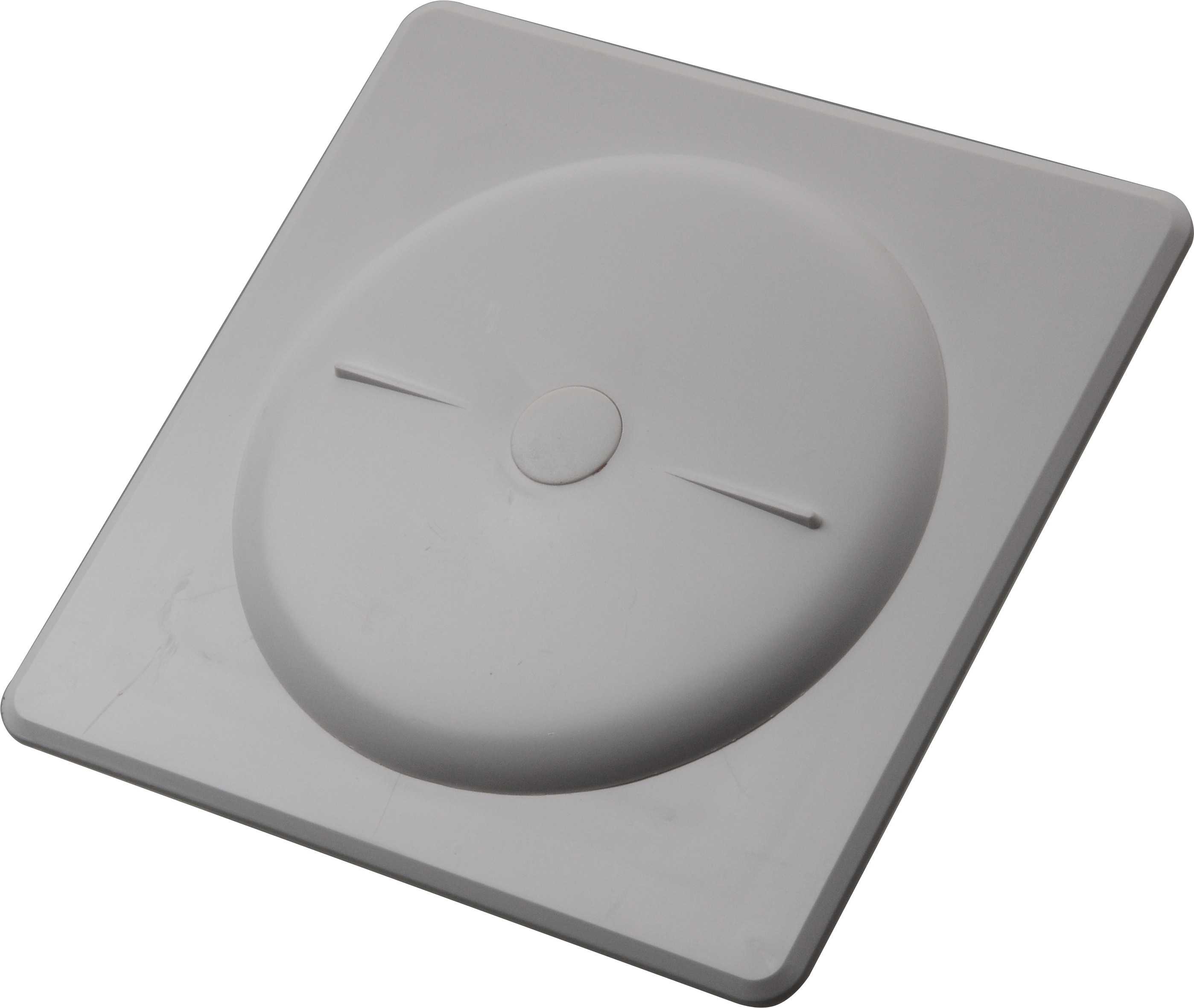 Tallerkenventil med firkantet flens. Tallerkenventilen er en trekkfri tilluftsventil, produsert i slagfast polystyrene, hvit av farge. Ventilene er tilpasset plast/metall teleskopkanaler. Produktene leveres EAN-merket i opphengspose (selvvalgspakket).