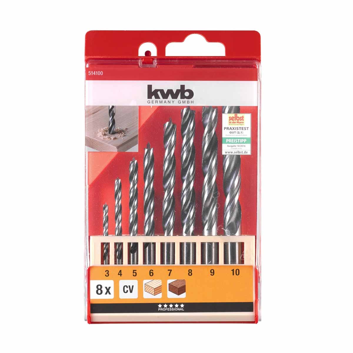 KWB treborsett i CV-stål med 2-fase spiraler for stabil og rett boring. Senterpunkt og skulderkutter sikrer presise og rivefrie hull. Borene passer for både mykt og hardt tre.Settet inneholder 8 trebor med diameter 3,0 – 10 mm.