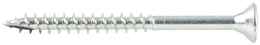MFT treskrue i herdet karbonstål, AISI-1022. Korrosjonsklasse C1. Med forsenket hode og elektrolytisk overflatebehandling. Skruen er vokset for lavere innskruingsmoment. Skruespiss med fiberkutt som reduserer risikoen for sprekkdannelse ved montering. Torx bitsfeste for optimalt grep mellom bits og skrue. Freseriller under hodet gir perfekt forsenking og et flisfritt resultat. Beregnet for innendørs bruk på tre og spon.