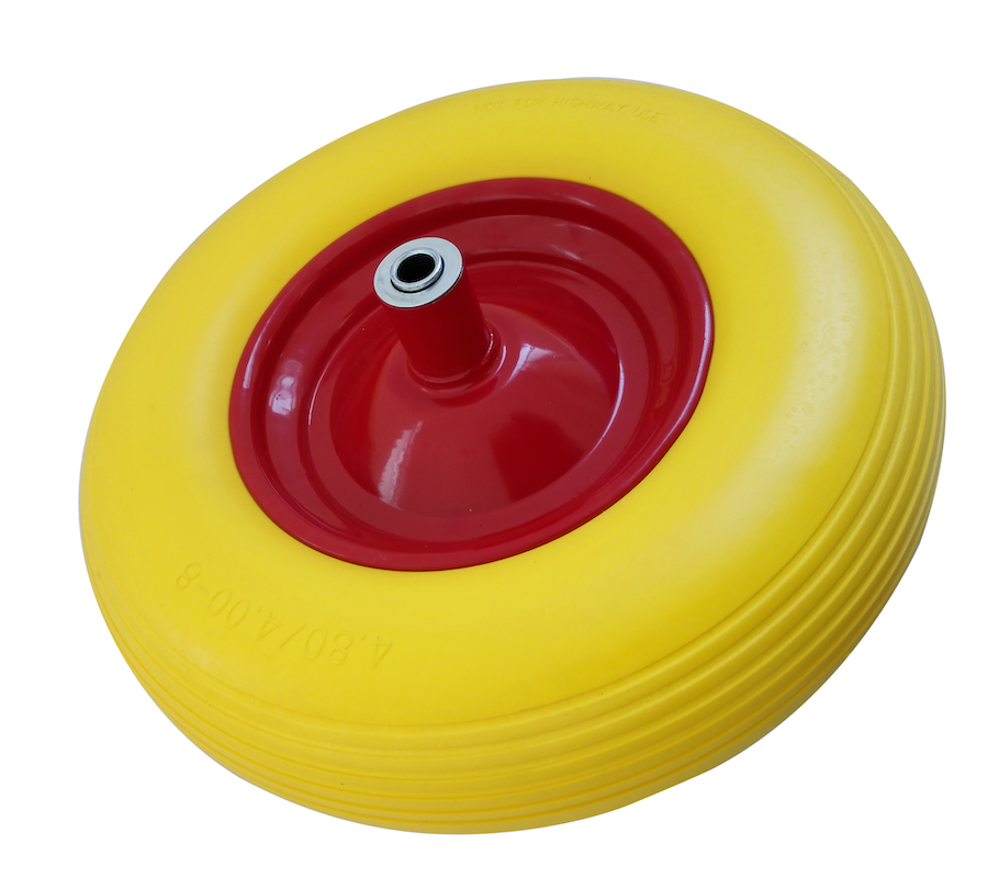 Millarco punkteringsfritt hjul i massivt PU-skum med stålfelg og kulelager til trillebårer. Hjulet passer til de fleste vanlige trillebårer med 10/12mm aksling.