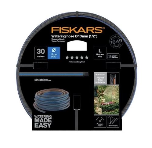 Fiskars vannslange er enkel å håndtere, og har høy motstandsdyktighet mot både utvendig og innvendig trykk. Vannslangen har vridnings- og UV-beskyttelse for økt holdbarhet. Fri for phthalater.